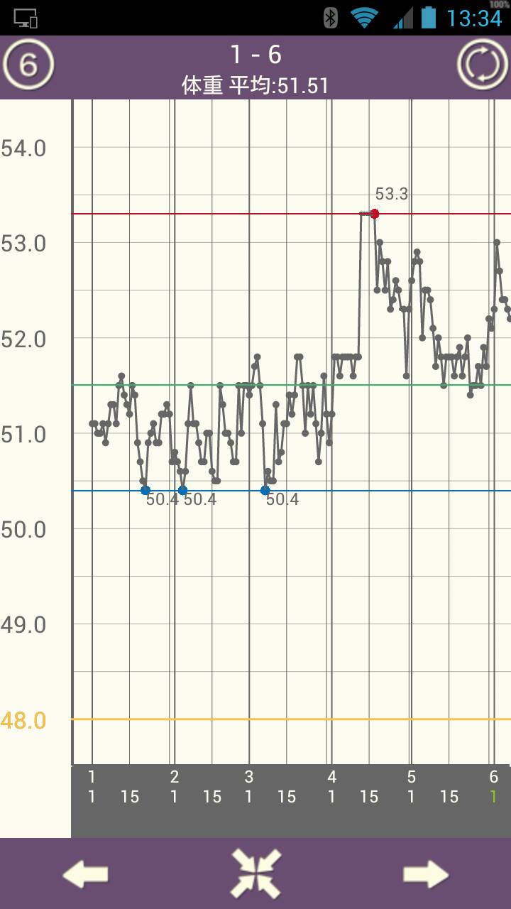 しばらく51kg前後を上下してたけど4月の沖縄で53kgまで増えて、それからずっと52kg台。