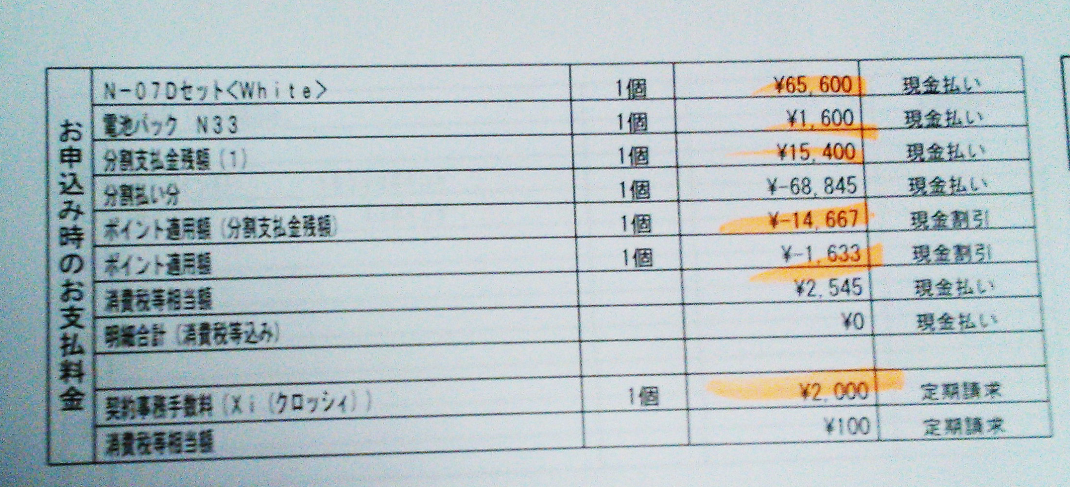 支払ったのはN-04Cの残金もポイントで全部終わらせてバッテリーの予備も1つ買って、頭金も無しで、結局0円。