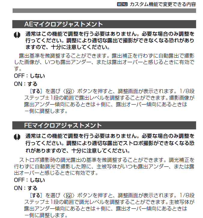 n例えば、AEマイクロアジャストメントの設定を変えて無い状態で、