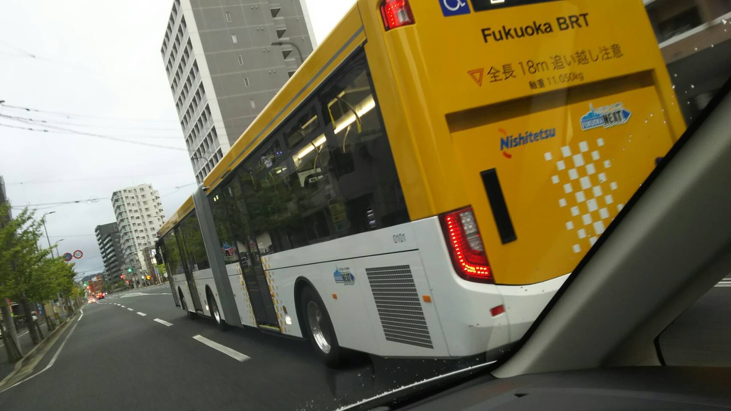 回送だけど、噂の連節バスが走ってた。
