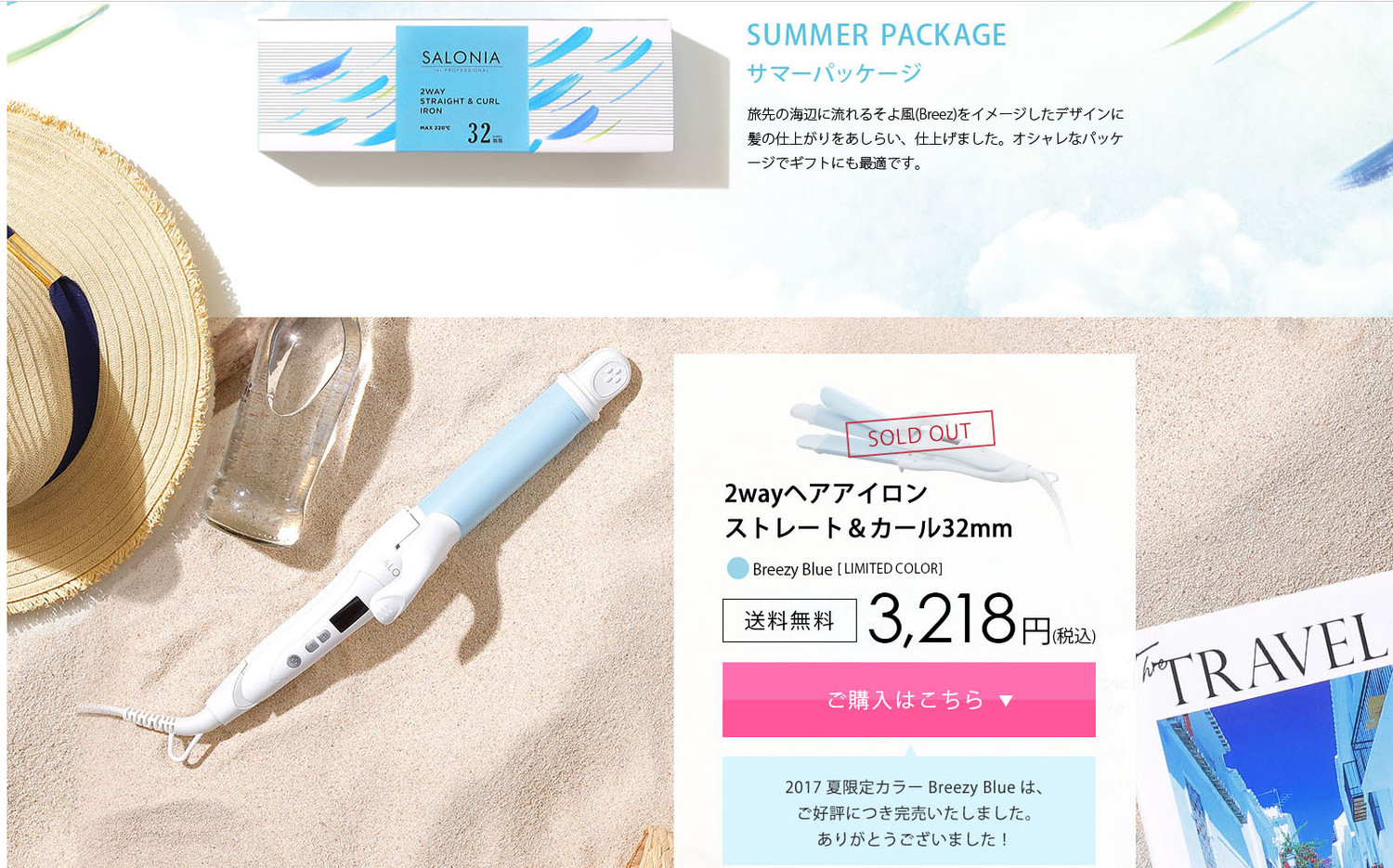 サロニア?ストレート&カールアイロン(カール32mm) SL-002ABL (ブリージーブルー)