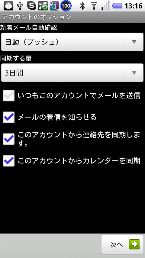 設定が終わったら[次へ]